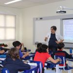 As turminhas dos 1° anos A, B e C – após uma semana inteira de acolhimento, reconhecimento e adaptação – iniciaram as primeiras atividades do ano, começando com o alfabeto. Os alunos participam de atividades que auxiliam no processo de letramento e alfabetização. Uma das atividades, a professora trabalha e estimula o reconhecimento das letras, iniciando o ano com a letra “E”. A turminha conversou sobre algumas palavras, número de letras e sílabas, associando alguns objetos trazidos pelos alunos que iniciam com a letra do dia. Muito bom turminha!